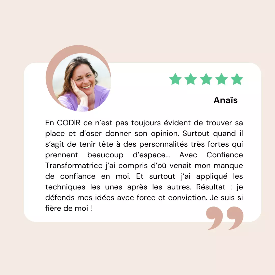 Aujourd'hui j'ai une réussi à bâtir une confiance en moi à toutes épreuves, et j'ose le dire. Ça m'a pris du temps, des efforts, des larmes, et quelle libération au bout du chemin !